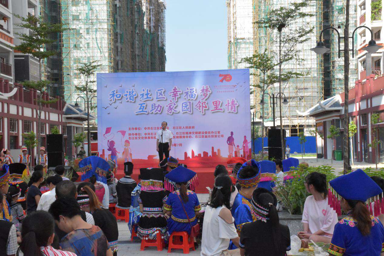 ??????????? 2019年7月27日,為慶祝新中國成立70周年,紀(jì)念百色起義90周年,由區(qū)委宣傳部組織的2019百色市右江區(qū)《我和我的祖國》大型快閃表演活動分會場暨第二屆“老鄉(xiāng)家園”鄰里節(jié),在老鄉(xiāng)家園-迎龍易地扶貧搬遷安置小鎮(zhèn)舉行。右江區(qū)區(qū)委常委、宣傳部部長、區(qū)人民政府副區(qū)長王世凡等,以及區(qū)直相關(guān)部門領(lǐng)導(dǎo)和公司有關(guān)領(lǐng)導(dǎo)參加此次活動。