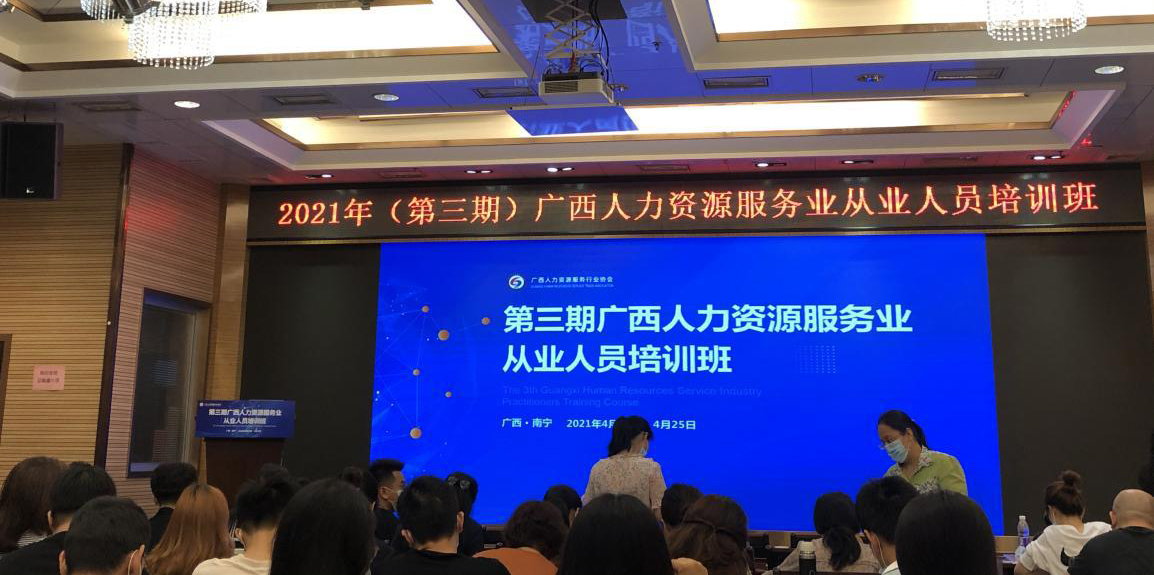 ????????2021年(第三期)廣西人力資源服務(wù)業(yè)從業(yè)人員培訓(xùn)班近日在南寧舉辦,各市企事業(yè)單位從事人力資源工作人員,以及全區(qū)各類(lèi)人力資源服務(wù)機(jī)構(gòu)從業(yè)人員參加培訓(xùn),益嘉人資公司派一人參加。