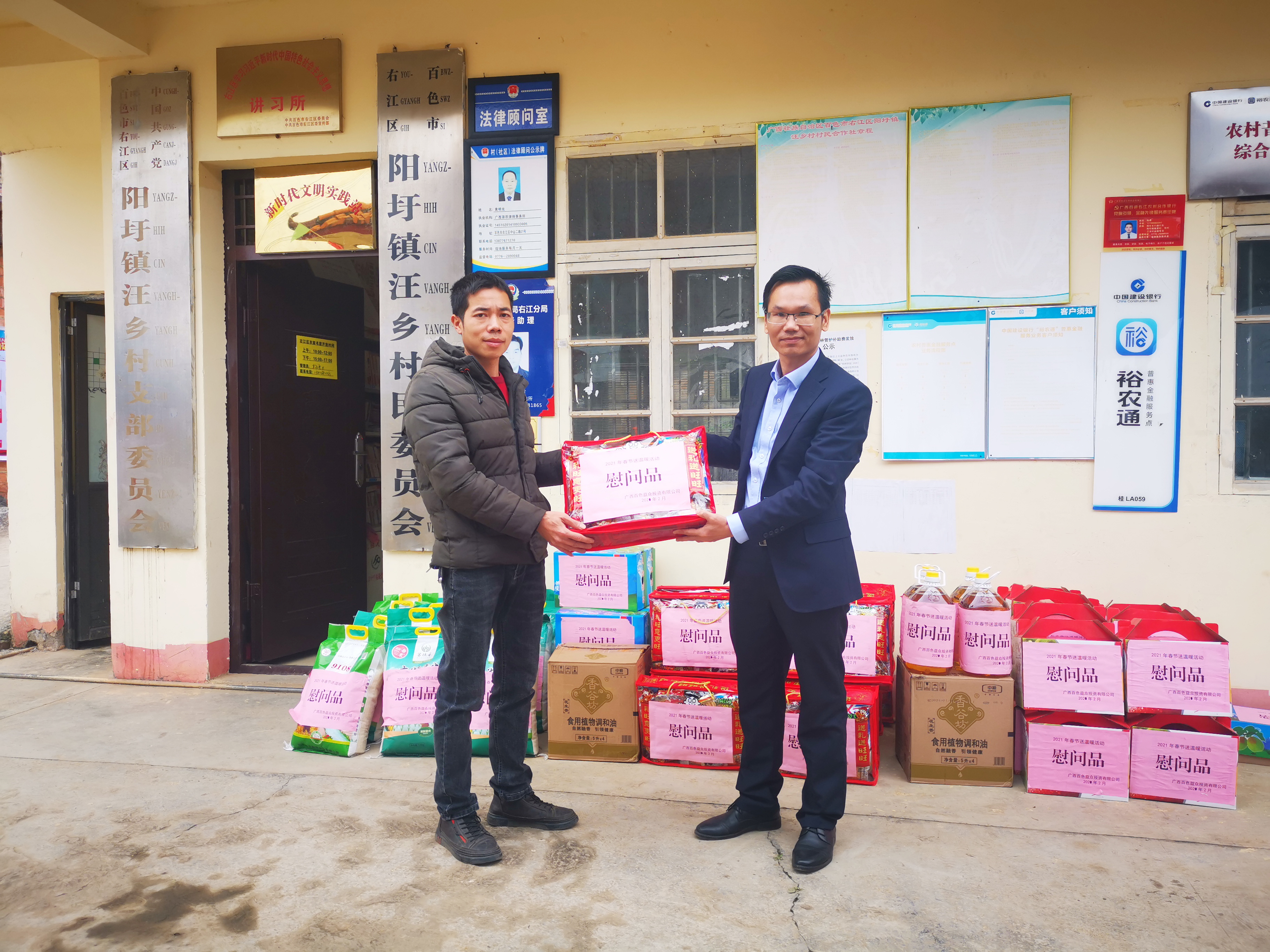 ????????春節(jié)將至,作為右江區(qū)陽圩鎮(zhèn)汪鄉(xiāng)村的幫扶單位,益眾公司始終牽掛著汪鄉(xiāng)村村民的冷暖。2月3日,公司領(lǐng)導(dǎo)帶隊赴汪鄉(xiāng)村開展春節(jié)節(jié)前送溫暖慰問活動。
