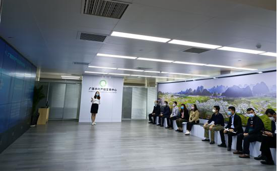 考察組一行先到北部灣產(chǎn)權(quán)交易所集團詳細了解其在農(nóng)村產(chǎn)權(quán)交易中心建設(shè)與推廣取得的成果與經(jīng)驗,并就項目涉及的政策支持、合作與運營模式、投融資形式、機構(gòu)設(shè)置等問題,與北部灣產(chǎn)權(quán)交易所集團副總經(jīng)理夏雋帶領(lǐng)的團隊進行深入探討。隨后,實地參觀了貴港市覃塘區(qū)農(nóng)村產(chǎn)權(quán)交易中心,各局辦負責(zé)人及公司相關(guān)人員分別就各自所涉及的工作和業(yè)務(wù)與貴港市覃塘區(qū)政府辦、農(nóng)業(yè)農(nóng)村局等工作人員進行學(xué)習(xí)交流。