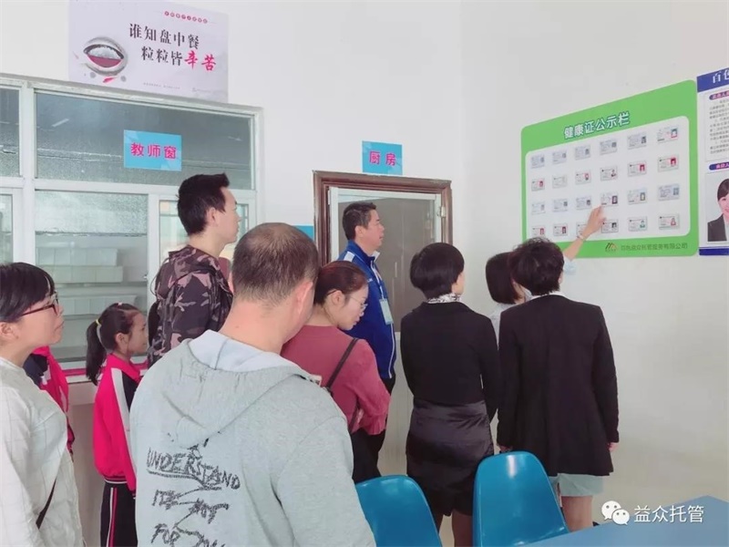 ????? 為了讓家長們更好地了解學(xué)校食堂食品安全衛(wèi)生,增強(qiáng)學(xué)校食堂工作的透明度,更好地做好學(xué)生飲食工作。2018年11月2日上午,益眾托管公司參加了百色市第十小學(xué)組織的“家校聯(lián)動,共筑食品安全防線”活動,校方代表、一年級部分家委會成員、學(xué)生代表檢查小組走進(jìn)益眾托管食堂,實(shí)地監(jiān)督和檢查食堂工作。