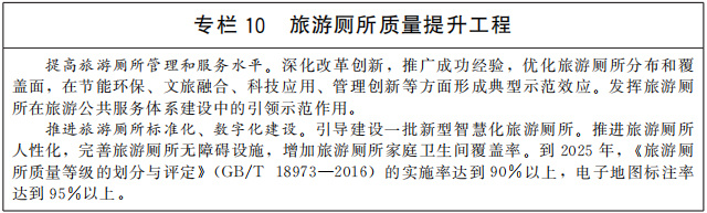 優(yōu)化旅游公共服務(wù)設(shè)施布局,完善配套設(shè)施和功能。適應(yīng)游客出行方式變化,加大面向散客的旅游公共服務(wù)力度。科學(xué)規(guī)劃建設(shè)旅游景區(qū)停車場(chǎng)、內(nèi)部交通、便民設(shè)施、標(biāo)識(shí)標(biāo)牌等,合理配置廁所、垃圾桶,建設(shè)一批示范性旅游廁所,進(jìn)一步鞏固旅游廁所革命成果。推動(dòng)文化和旅游公共服務(wù)共建共享,探索建設(shè)一批文化和旅游綜合服務(wù)設(shè)施。推動(dòng)文化服務(wù)進(jìn)旅游景區(qū),在旅游設(shè)施、旅游服務(wù)中增加文化元素和內(nèi)涵,體現(xiàn)人文關(guān)懷。充分考慮特殊群體需求,健全無(wú)障礙旅游公共服務(wù)標(biāo)準(zhǔn)規(guī)范,加強(qiáng)老年人、殘疾人等便利化旅游設(shè)施建設(shè)和改造,推動(dòng)將無(wú)障礙旅游內(nèi)容納入相關(guān)無(wú)障礙公共服務(wù)政策。